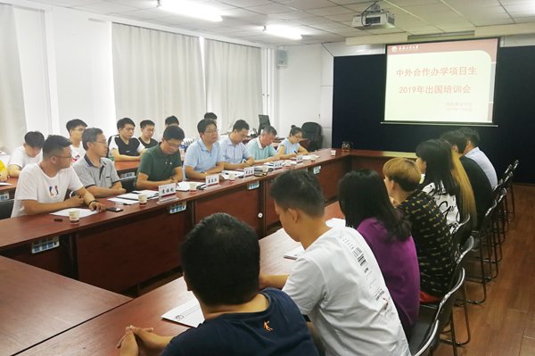 在南湖校区召开中外合作办学项目生2019年出国培训会。副校长李占国,韩漫h