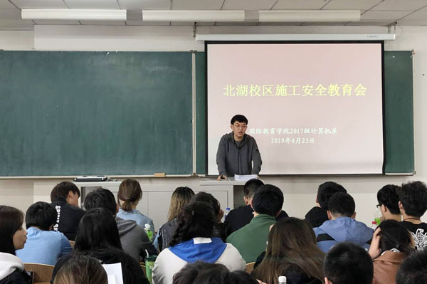 第一时间组织召开北湖校区2017、2018级学生安全教育会,对施工期间的学生安全管理提出要求。
