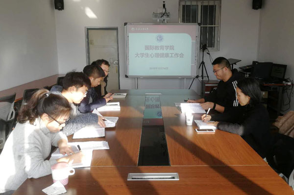 在南湖校区召开大学生心理健康教育工作研讨会,邀请学生工作处大学生心理健康教育与咨询中心主任兼心理研究所副所长张丽波、学院党总支书记胡刃锋及全体辅导员参加了研讨。